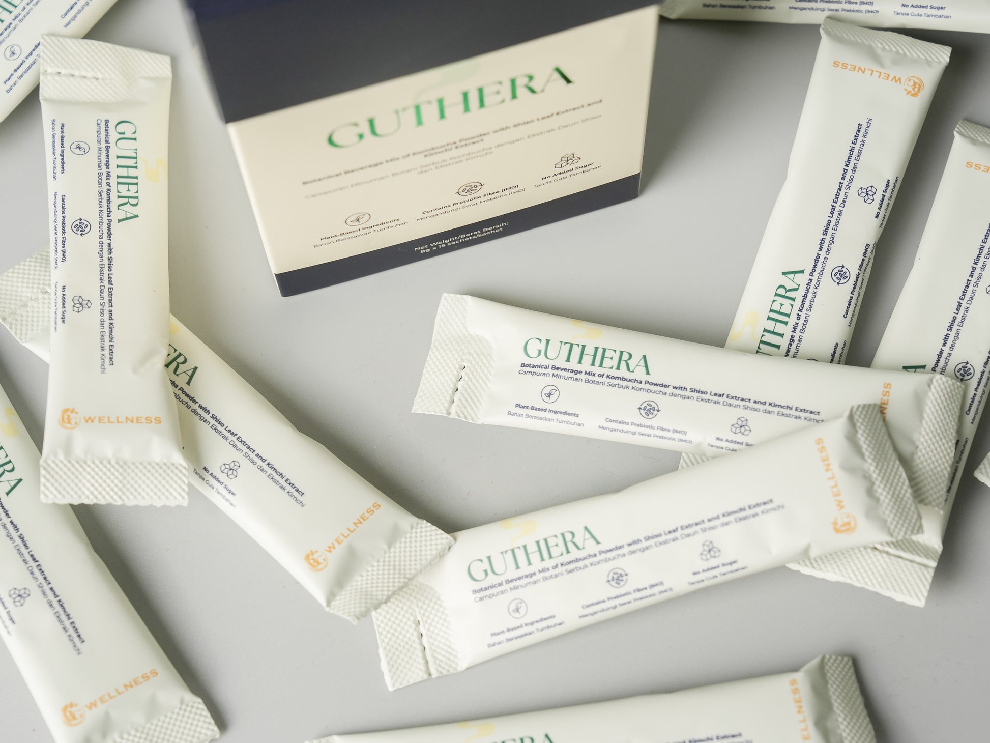 Guthera is formulated to help you reset and feel lighter from within. Its carefully selected prebiotic fibers nourish beneficial microbes, encouraging natural SCFA production that supports a strong intestinal barrier and smoother motility. Postbiotic elements from kombucha and kimchi help shape a balanced internal environment, while shiso polyphenols support a calm digestive immune response.